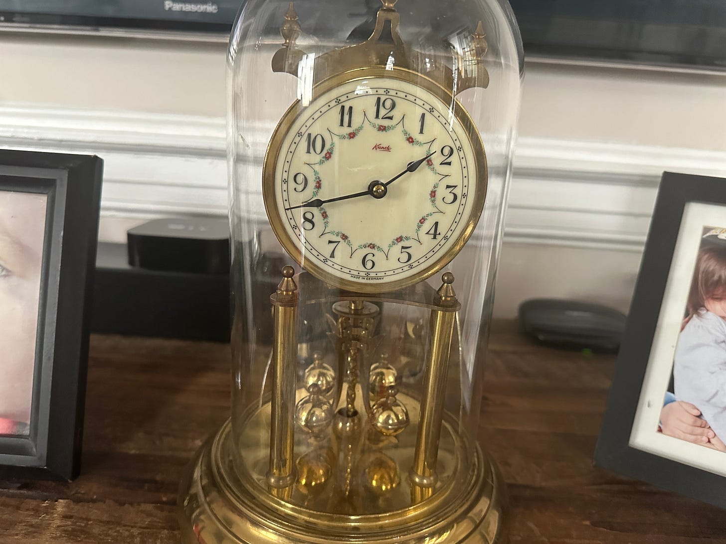 Anniversary Clocks are ridiculously difficult to fix. The weights are attached by a thin steel strip that twists back and forth and offers enough momentum to keep the balls turning. Getting that strip in the right position with the right torque is nearly impossible. The clock itself is about as accurate as a stick in the ground, primarily because the interval can speed up or slow down depending on the weather, the humidity, and how many kids knock up against it while they run to the bathroom. In short, it’s a ridiculous device.